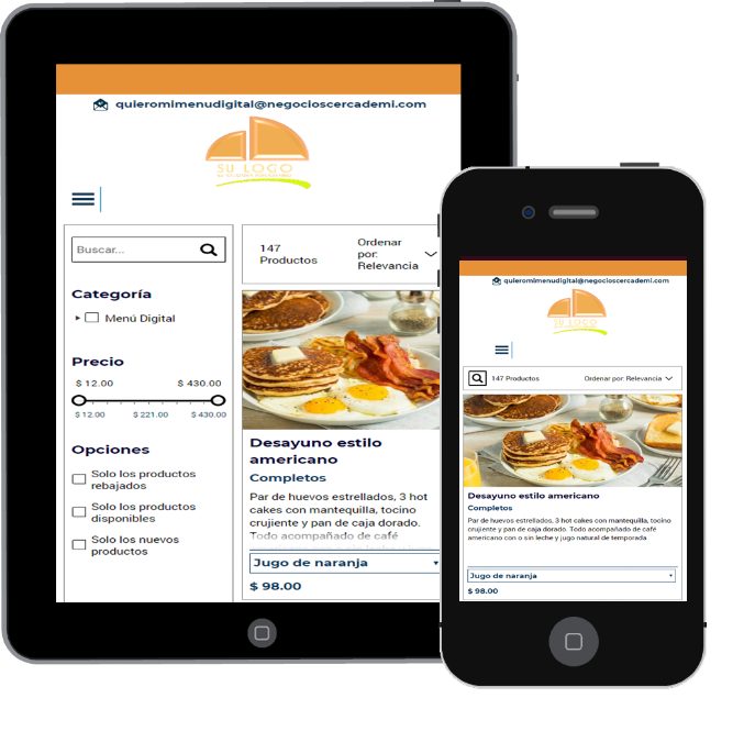 • Imágenes vibrantes, descripciones cautivadoras, y un diseño que resalta la esencia de tus platillos. Transforma tus platillos en experiencias visuales que cautiven a tus clientes de forma tal que no puedan resistirse a visitar tu restaurante.